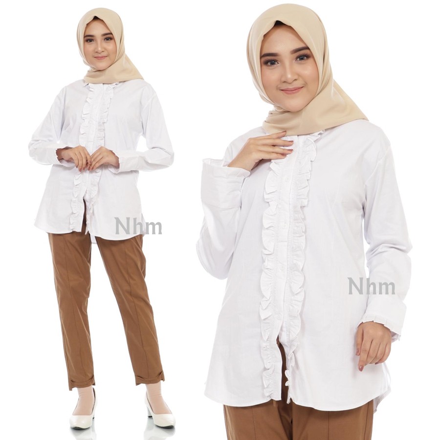 NHM Kemeja Putih Polos JUMBO Rempel FULL , Kemeja Wanita Baju Kantor from shopee.co.id